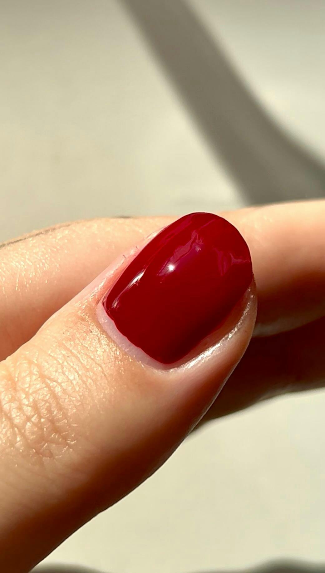 Dare to make a statement with Burgundy Red, a rich, moody hue that channels timeless elegance with a modern twist. This deep red nail lacquer is more than just a polish — it’s a power move. Crafted from an 83% plant-based, vegan, and 10-free ingredients, it offers stunning color payoff without the toxic baggage. Thanks to powerful nourishing ingredients it also doubles as nail treatment that strengthens brittle nails.